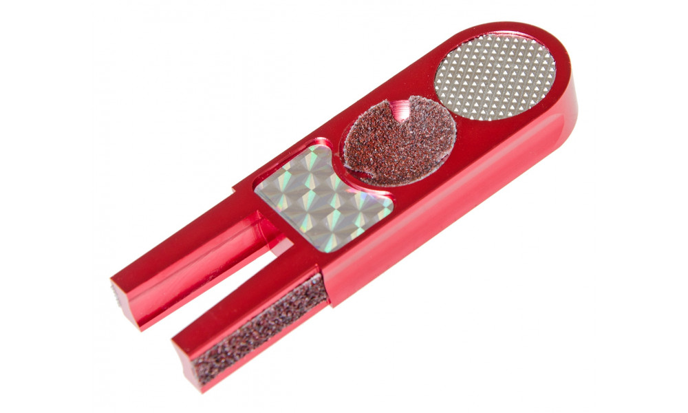 - На внешней стороне "рогов" Ultimate имеет два полукруглых углубления с абразивом по всей длине. Они служат для обработки боковой поверхности наклейки.